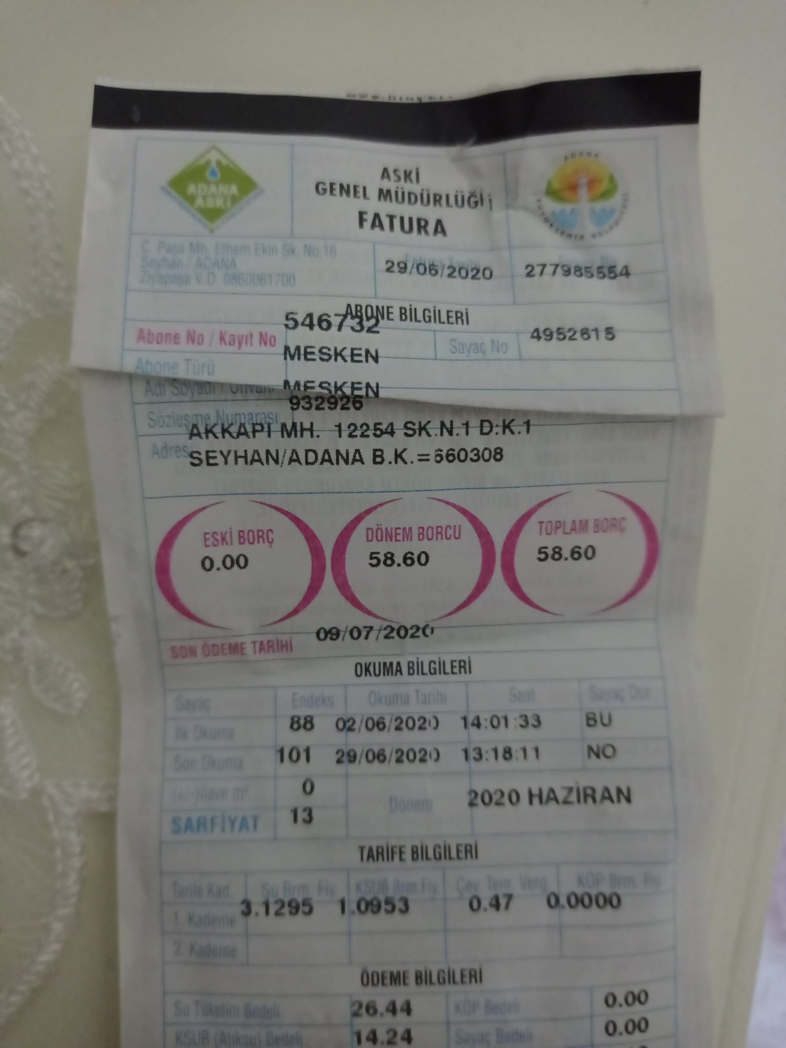 adana su faturası ödeme