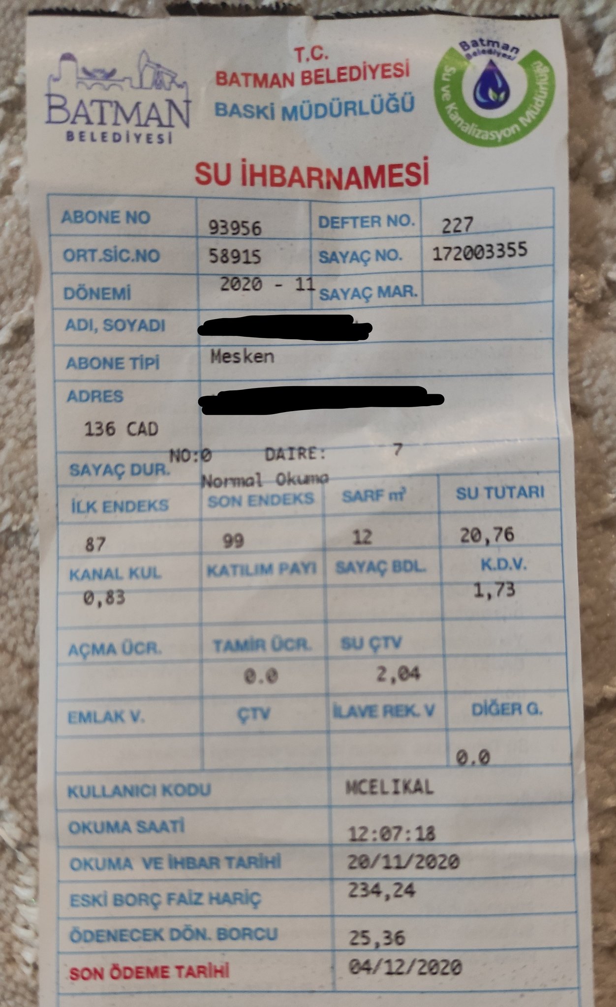 batman belediyesi su faturasi sorgulama